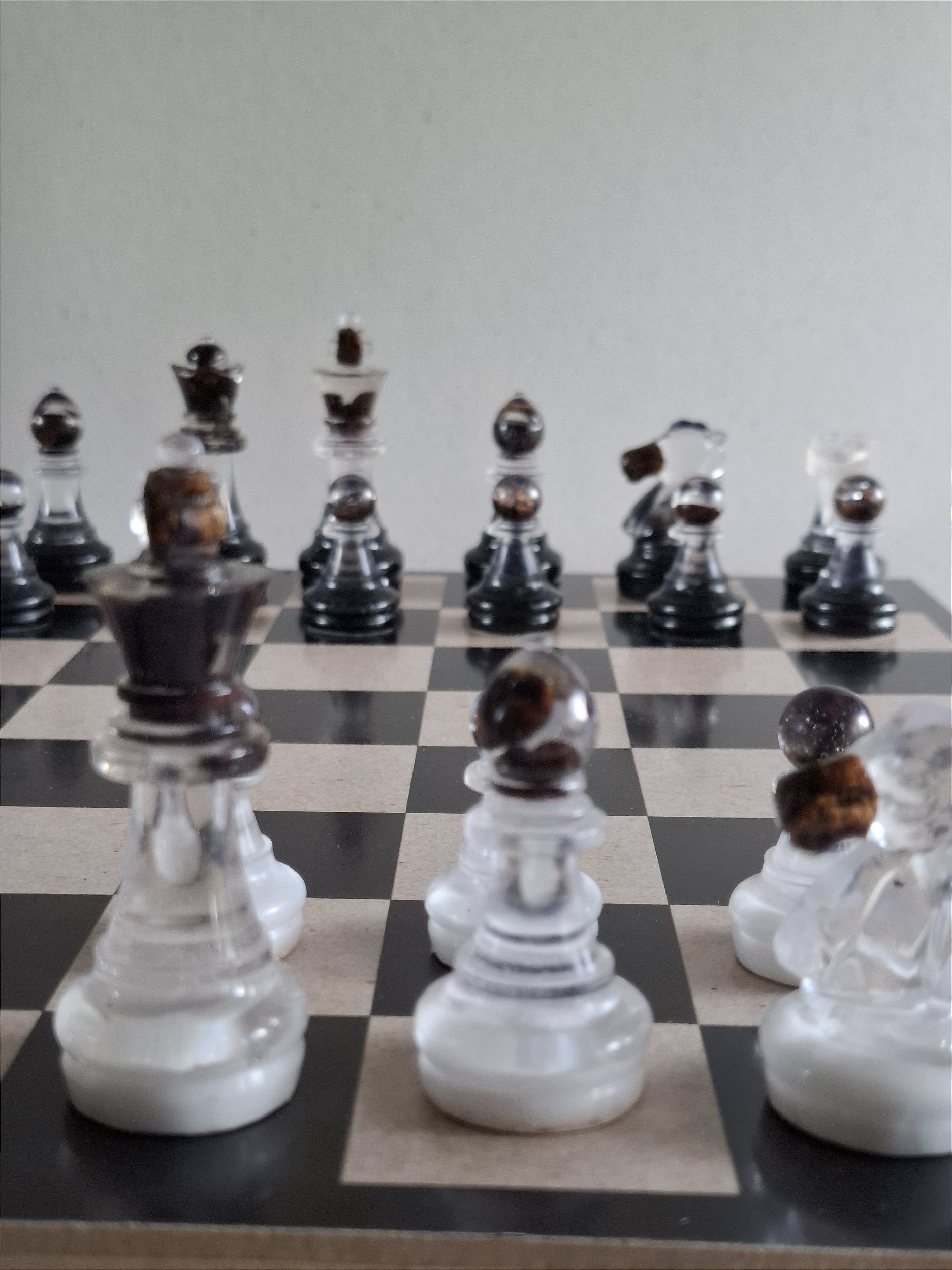 Descubra a beleza única das nossas peças de xadrez, feitas à mão com todo o cuidado.